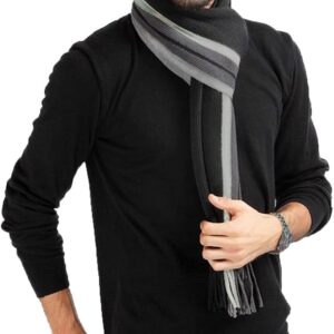 A soft, striped winter scarf for men featuring black and grey tones with a classic plaid design. Thick, warm, and perfect for autumn and winter wear.