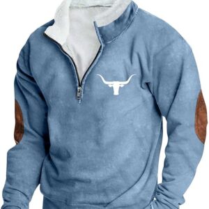 Warm, fleece-lined men’s half zip jumper with stand collar and patchwork design. Perfect for casual wear, workwear, or sports. Available in plus sizes 8โ22.