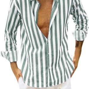 Men’s long sleeve Hawaiian-style shirt with striped design and button-down front. Lightweight, stretchy, and breathable โ perfect for business casual, beach holidays, summer vacations, or daily wear. Made from 95% polyester and 5% spandex for comfort and easy movement.