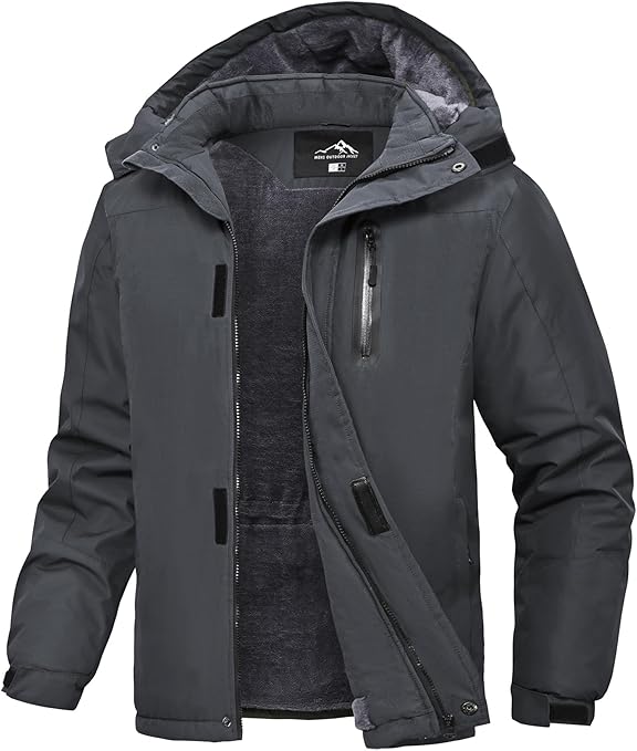 Waterproof Mountain Hiking Jacket Made from 100% polyester with a soft fleece lining throughout, including the sleeves. Designed with a left-side zipper slider for European men’s fit. Machine washable and built for comfort, warmth, and protection during mountain hikes. Origin: China.