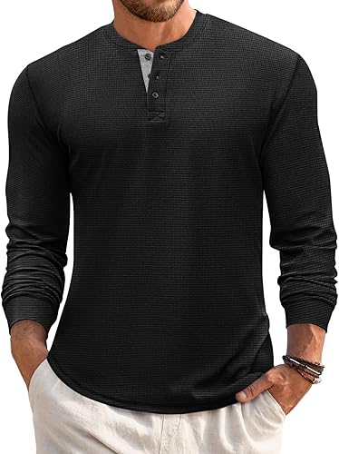 Men’s Henley neck top made from a smooth, stretchy polyester-elastane blend. Features a pull-on design and machine-washable convenience for everyday comfort and style.