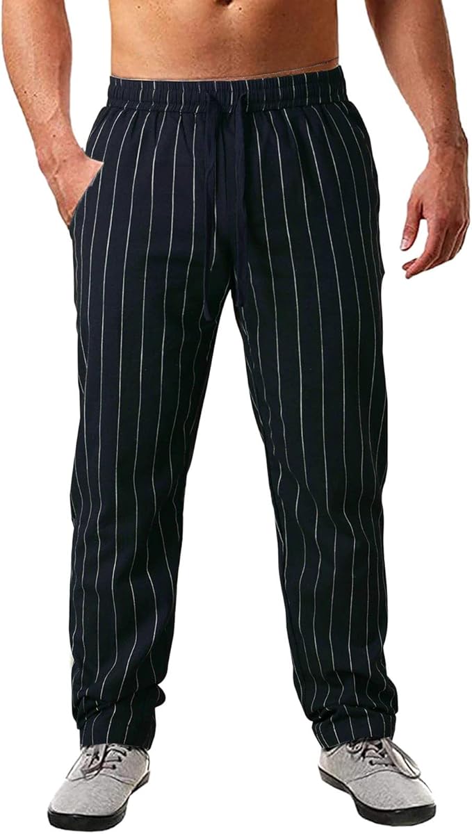Men’s Casual Pinstripe Trousers โ Lightweight cotton pants perfect for spring and summer. Sporty, relaxed fit with elastic waistband for all-day comfort. Stylish and versatile, ideal for casual wear or as a gift for boys aged 12+.