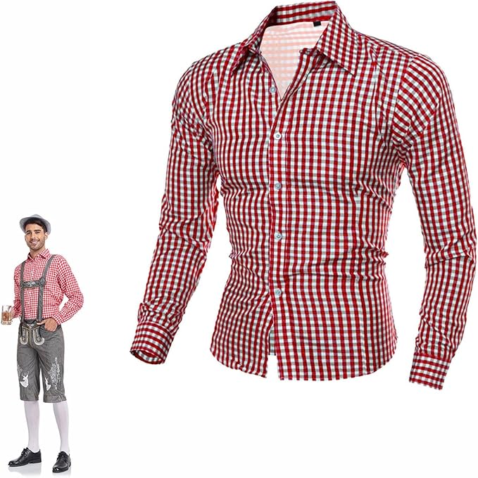 Men’s Checked Shirt – Classic Oktoberfest Style with Long Sleeves