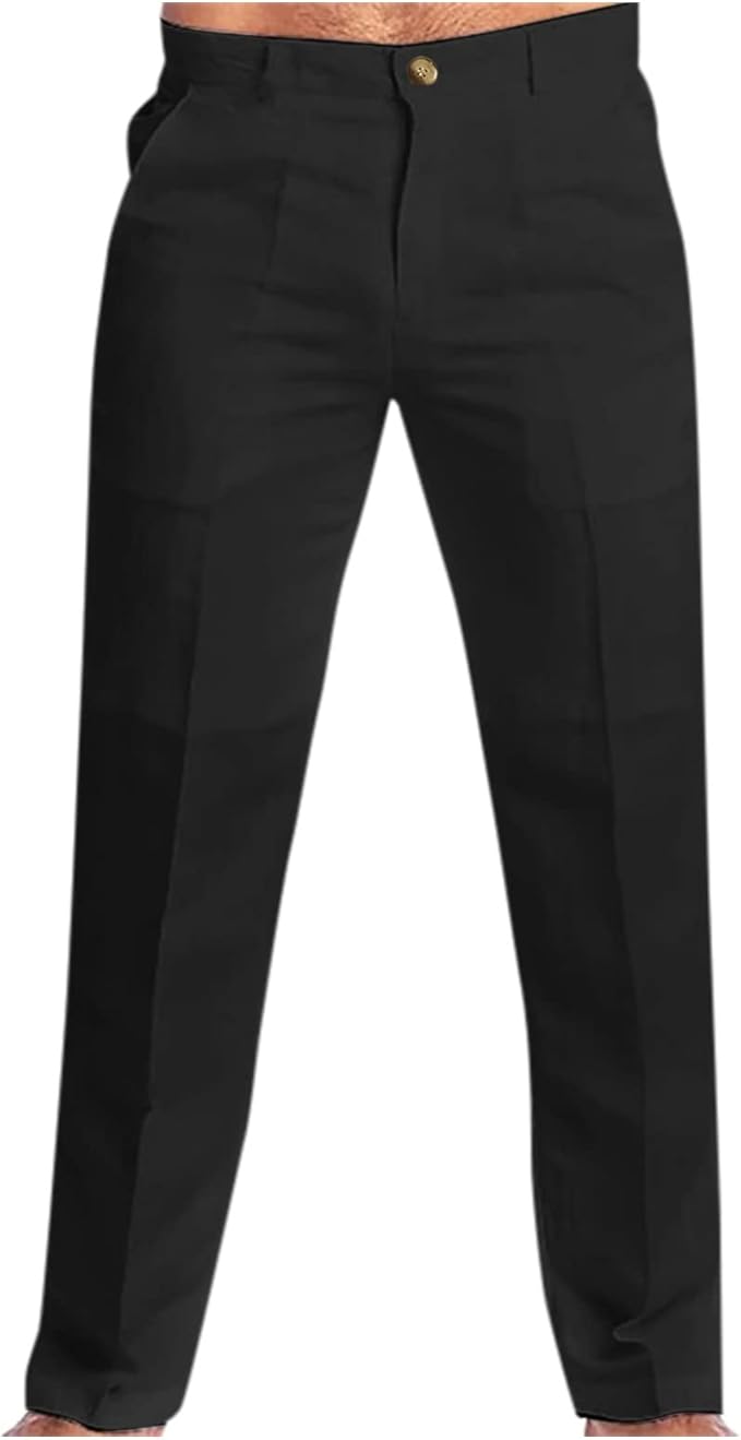 - Fit & Style: Slim fit with a straight leg and flat front